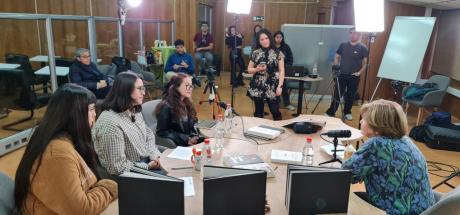 Pie de foto: Diálogo entre estudiantes y la Premio Nacional de Humanidades y Ciencias Sociales, Elizabeth Lira Kornfeld.